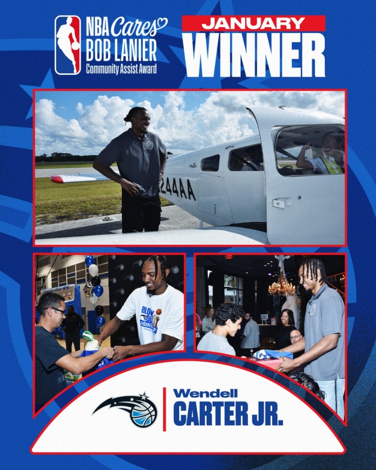 2025-02-26 00:18:28官方:魔术中锋卡特获NBA1月份“鲍勃-兰尼尔”社区关怀援助奖