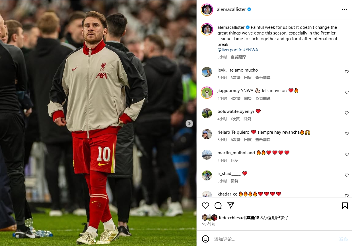 2025-03-18 18:47:31麦卡利斯特社媒:这是痛苦的一周,国际比赛日后要全力以赴