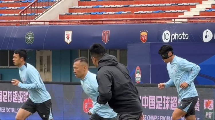 2025-03-28 21:21:37申花今天赛前踩场训练,中卫朱辰杰戴面具参加