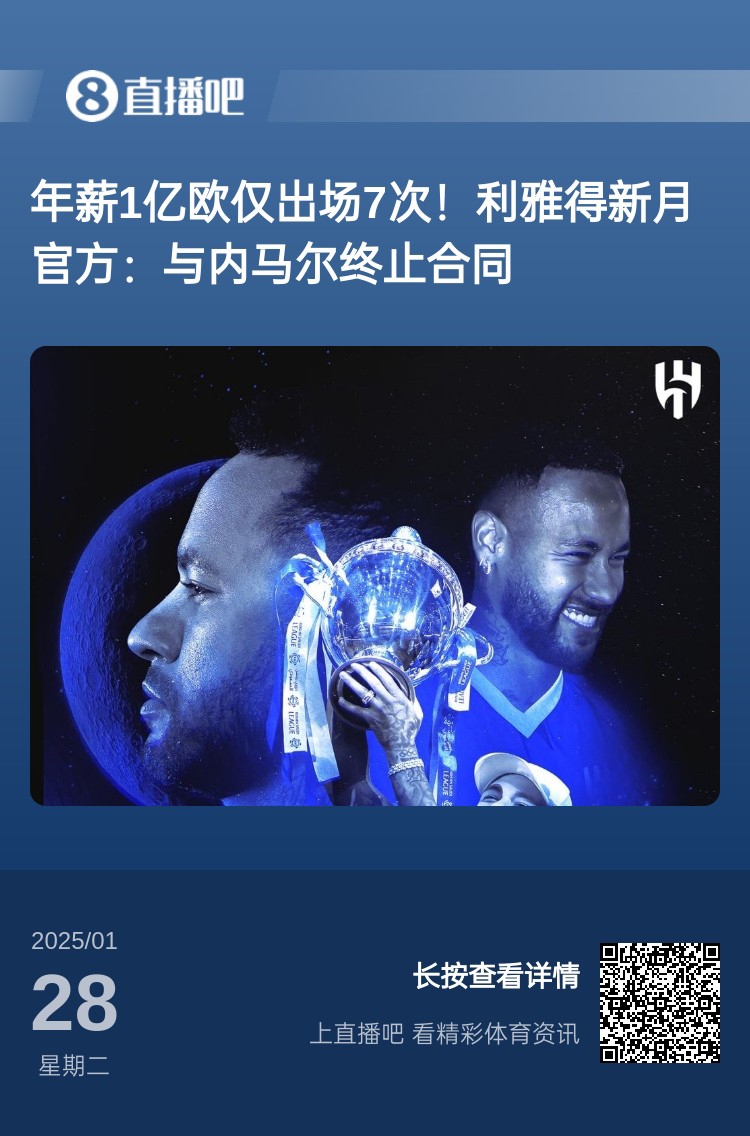 2025-03-03 13:47:09要钱何用?内马尔在新月年薪1亿出场7次,免签桑托斯1个月即追平